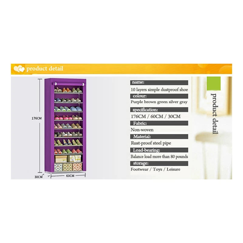 10 Layer Shoe Rack Nonwovens Steel Pipe Easy to install home Shoe cabinet Shelf Storage Stand Holder Space Saving Shoe Rack HWC