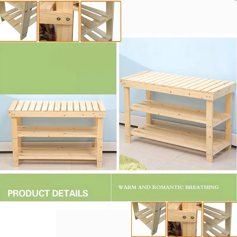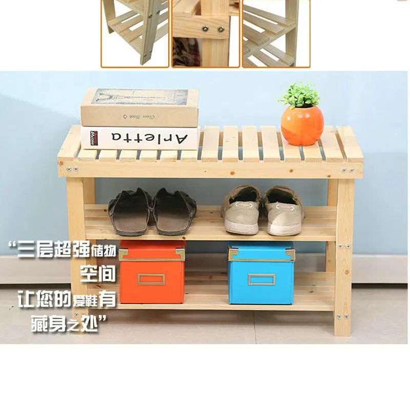 Solid Pine Wood Color Three Levels Shoes Rack Shoe Shelf Storage Footstool Bench Green Safe Without Painting E1 Material With SGS Certificate For Health Green Use, Three Levels Of Compress Shape To Save Space, Nature Color Without Any Painting To Protect Children,50/60/70/80/90/100CM Six Sizes For Your Choice 50CM Long: 50X29X46CM 60CM Long: 60X29X46CM 70CM Long: 70X29X46CM 80CM Long: 80X29X46CM 90CM Long: 90X29X46CM 100CM Long: 100X29X46CM