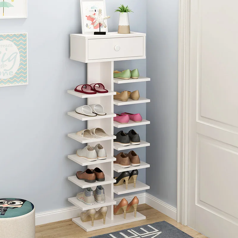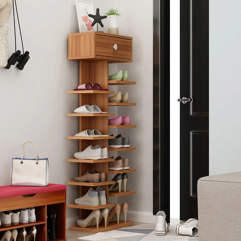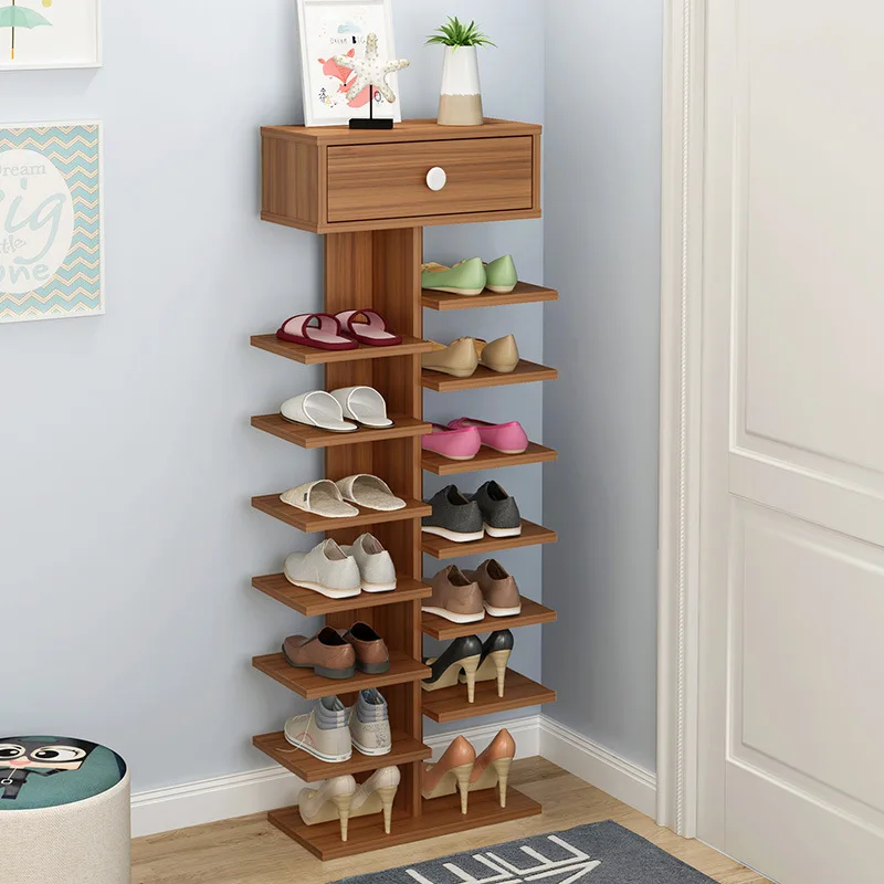 Wooden Shoe Rack Space-saving Multiple Layers Storage Shelf Doorway Simple Economical Shoe Cabinet with Drawer for Shoe Key