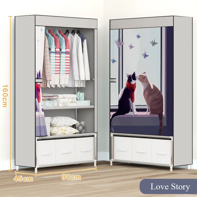 US $23.513D Cartoon Pattern Folding Cloth Wardrobe Home Bedroom Clothes Storage Cabinet DIY Assembly Fabric Wardrobe Closet Furniture
