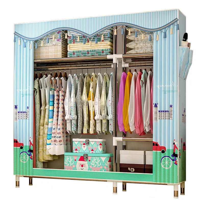DIY Simple Curtain portable wardrobe Storage Organizer cupboard furniture Cabinet bedroom furniture Reinforcement Stowed closet