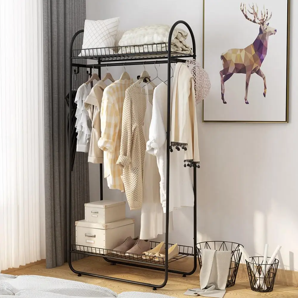 US $18.52Metal Coat Rack Floor Standing Clothes Stand Garment Rack with Shelf Home Bedroom Clothing Wardrobe Storage Organizer Furniture