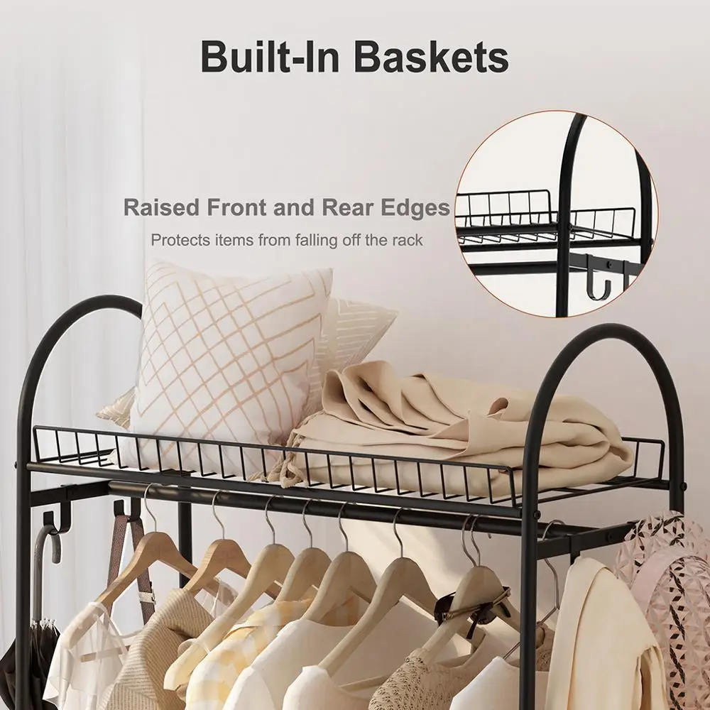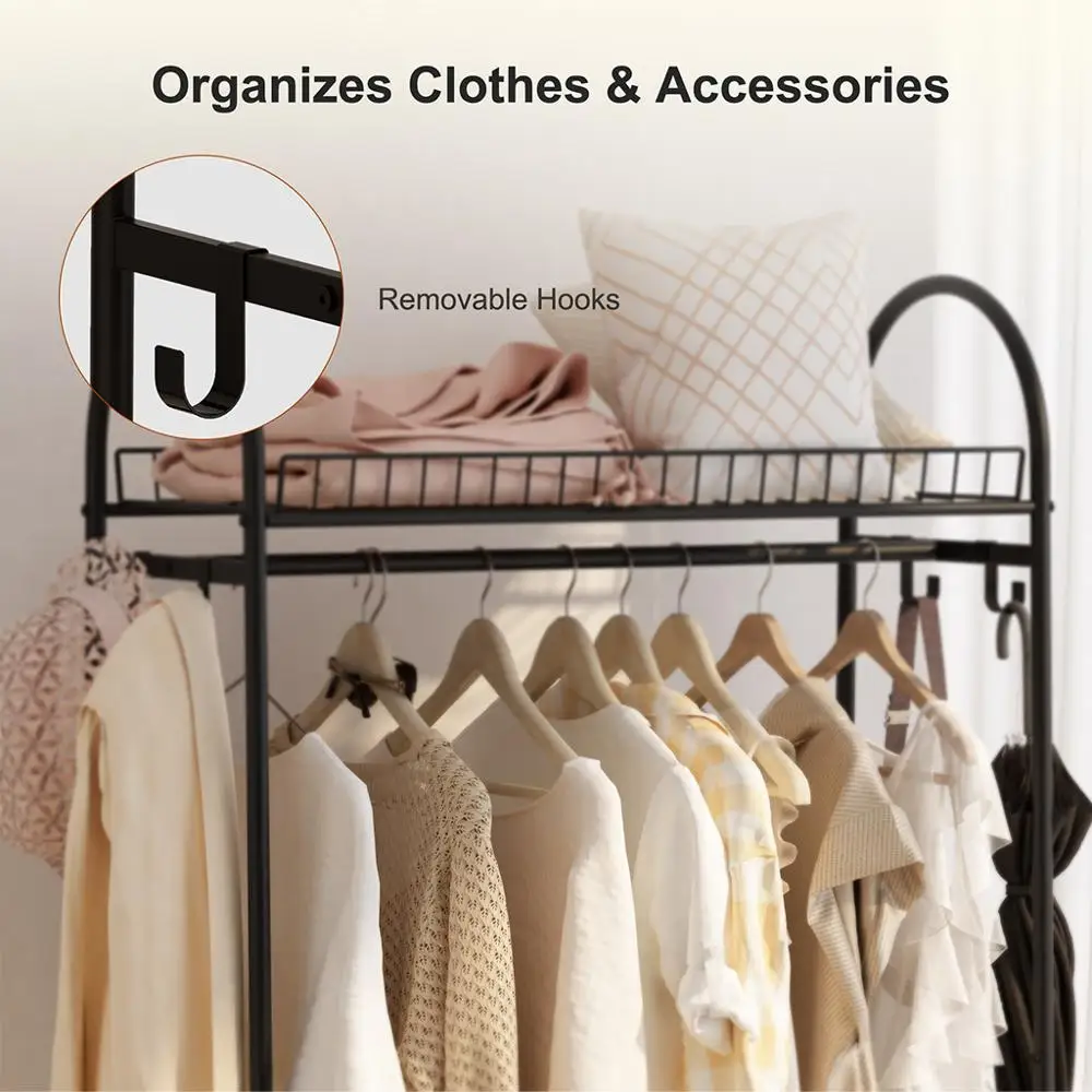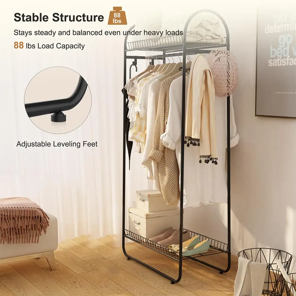 Metal Coat Rack Floor Standing Clothes Stand Garment Rack with Shelf Home Bedroom Clothing Wardrobe Storage Organizer Furniture