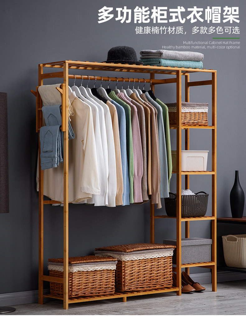 25%Bamboo Coat Rack Clothing Racks with Hanging Rod for Bedroom Dressing Room Clothes Hanger Stand Perchero Wadrobe Furniture