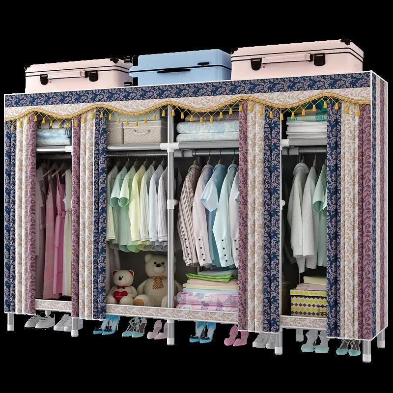 Steel Pipe Thickened Wardrobe Simple Cloth Wardrobe Rental Room Home All Steel Frame Cloth Cabinet Hanging Clothes Cabinet