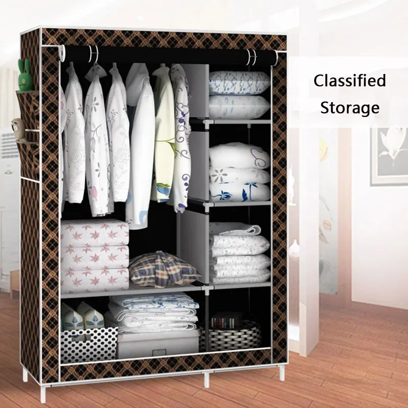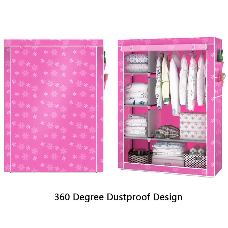 | Simple Fashion Non-woven Cloth Dustproof Storage Closet Clothes Hanging Wardrobe Steel Pipe Combination Folding Storage Cabinet |
