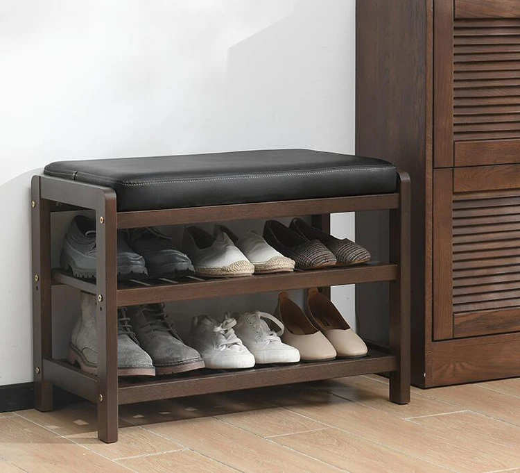 Solid Wood Shoe Storage Stool Living Room Shoe Rack Change Shoe Bench Cabinet Hallway Seat stool with shoe shelf
