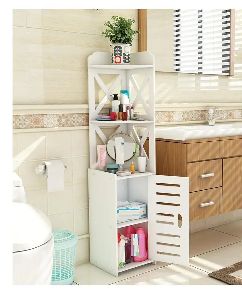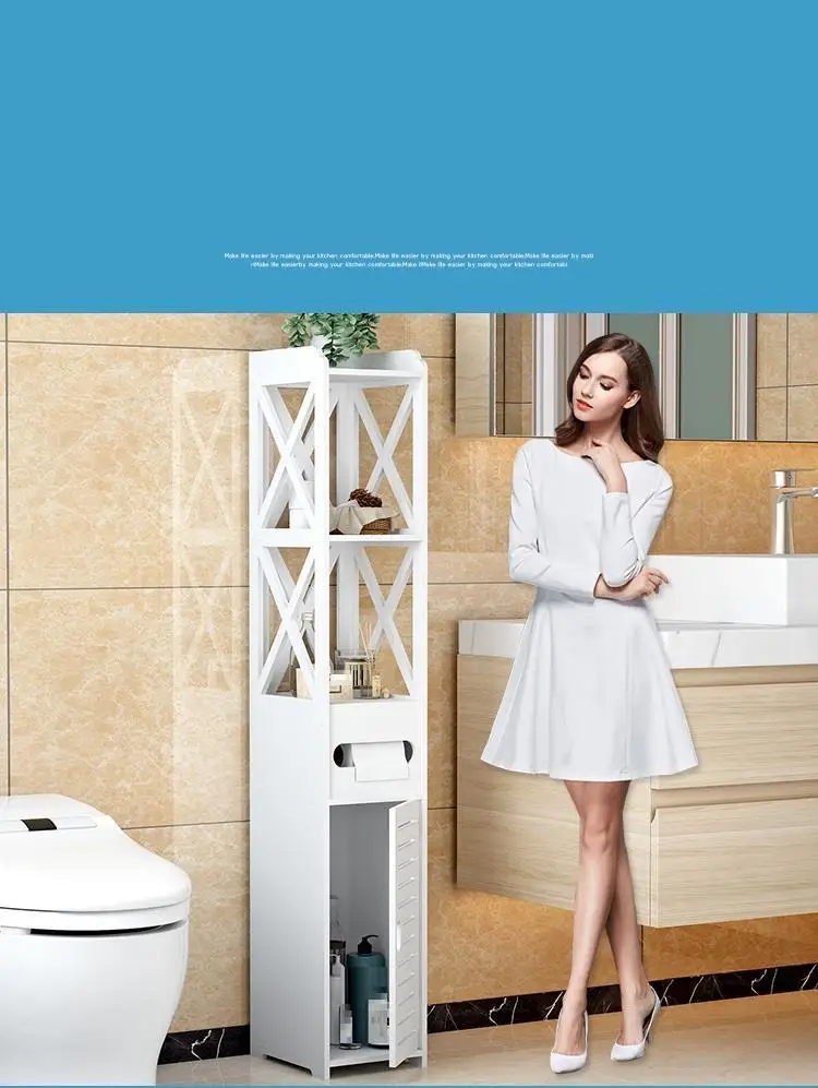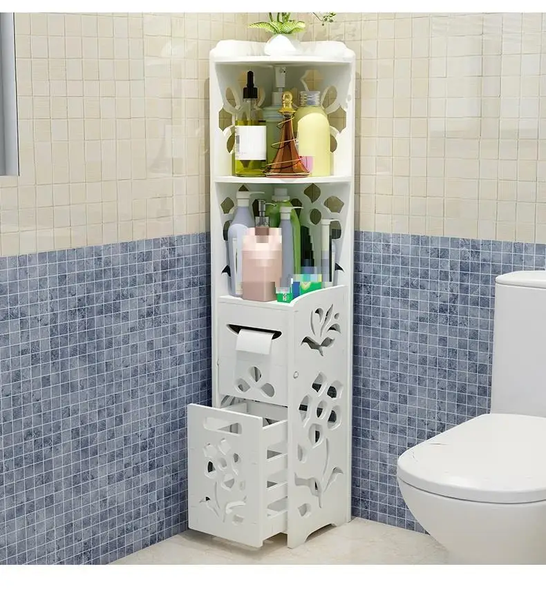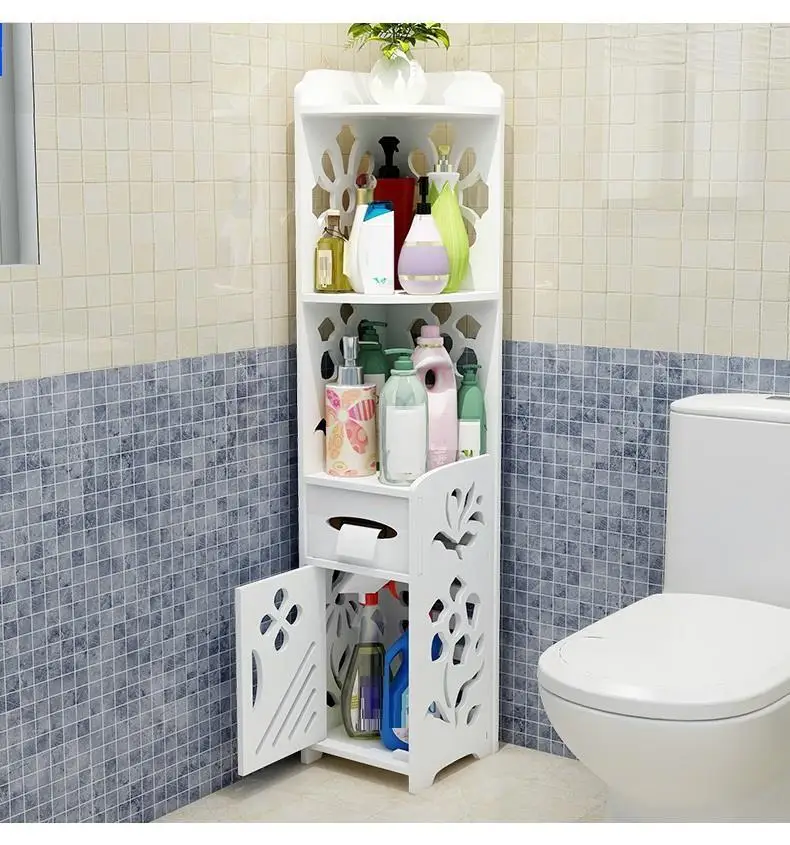 Actionclub Floor Mounted Storage Cabinet Corner Bathroom Vanity Bathroom Side Cabinet Towel Box Toilet Shelf Bathroom Furniture