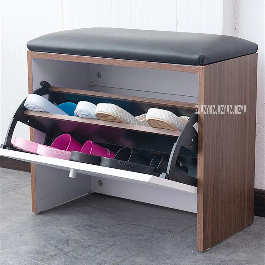 US $35.10ND190508 Living Room Double Deck Wood Shoe Storage Cabinet Doorway Creative Wood Shoe Rack Modern Fabric Shoes Trying Stool